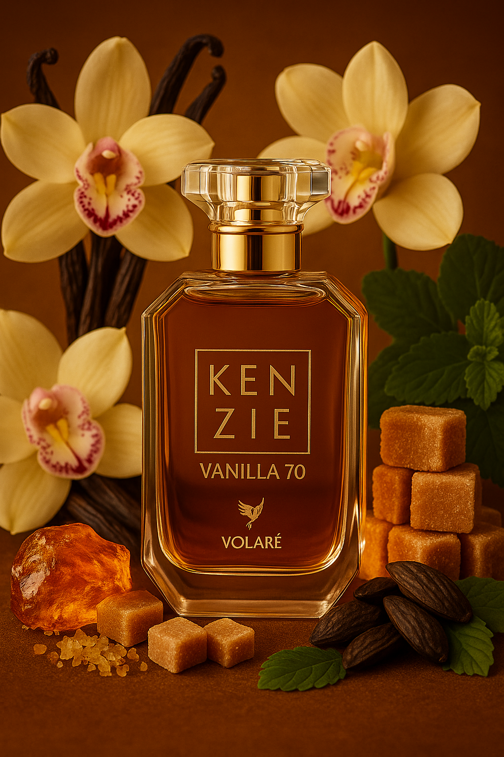 Vanilla 70 met la vanille au centre, travaillée dans une facette profonde et enveloppante. L'orchidée vanille et le jasmin ouvrent la composition avec douceur, avant de laisser place à une cassonade fondante et une fève de tonka généreuse.
